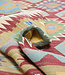 Beautiful hand-woven traditional kilim carpet from Afghanistan, beautiful soft colors, certainly not a "hard" fabric like most kilims!, but timeless and suitable for all interior styles thanks to the colors