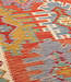 Dieser elegante, farbenfrohe und einzigartige handgewebte Kelim-Teppich wurde aus Ghazni-Wolle gefertigt, die als die hochwertigste Wolle dieser Region bekannt ist.