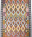 Beautiful hand-woven traditional kilim carpet from Afghanistan, beautiful soft colors, certainly not a "hard" fabric like most kilims!, but timeless and suitable for all interior styles thanks to the colors