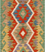 Dieser afghanische Kilim-Teppich misst 240x79 cm und wurde mit traditionellen Techniken aus 100% Wolle handgewebt. Das kräftige Diamantmuster ist in natürlichen Erdtönen wie Grün, Ocker, Braun, Rot und Elfenbein gehalten. Der Teppich ist beidseitig verwen Lesen Sie mehr..