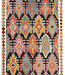 Die Kelims wurden mit natürlichen Farbstoffen wie Baumrinde, Früchten, Gemüse und anderen pflanzlichen Quellen gefärbt. Dies führt zu wunderschönen und harmonischen Farbkombinationen.