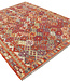 Ein prachtvoller afghanischer Kelim Teppich, handgewebt aus 100% Wolle, in der Größe 293x209 cm. Das kräftige tribale Muster in dominanten Rottönen mit Akzenten in Senfgelb, Lavendel, Elfenbein und Grün macht diesen Teppich zu einem echten Hingucker. Ideal für alle, die ein wohnliches Ambiente mit traditionellem Flair suchen.