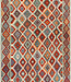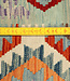 Dieser handgewebte afghanische Kelim Teppich bringt Leben in jeden Raum. Das geometrische Tribal-Muster in kräftigen Farben wie Rot, Orange, Türkis, Lavendel und Braun unterstreicht den kunstvollen Stil dieses traditionellen Teppichs. Mit den Maßen 308x198 cm ist er aus 100% Wolle gefertigt und ideal für Wohnzimmer, Schlafzimmer oder Arbeitsräume geeignet.
