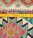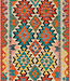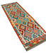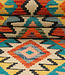 Dieser afghanische Kilim-Teppich misst 241x79 cm und wurde aus reiner Wolle handgewebt. Seine tribalartigen Muster in Türkis, Rot, Gelb und Koralle heben sich kontrastreich von einem hellen, cremefarbenen Hintergrund ab. Der Teppich ist leicht, wendbar und mit pflanzlichen Farbstoffen gefärbt. Ein perfekter Läufer für Flure, kreative Bereiche oder lebendige Wohnräume im Boho-Stil.