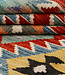 Handgewebter afghanischer Kilim mit geometrischen Stammesmustern und kräftigen Farben wie Senfgelb, Aquablau, Rot und Schwarz. Ein langlebiger Blickfang aus Wolle. Lesen Sie mehr..
