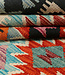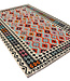 Dieser auffällige afghanische Kilim Teppich wird traditionell von Hand gewebt und präsentiert markante Diamant-Stammesmuster in einer lebhaften Farbpalette. Das strapazierfähige Wollmaterial sorgt für Langlebigkeit und Komfort, während die Flachgewebe-Struktur für einen ebenen Look sorgt. Perfekt, um Wohnräume, Flure oder kreative Bereiche mit ethnischer Kunst und Wärme zu bereichern.