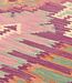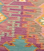 Dieser elegante, farbenfrohe und einzigartige handgewebte Kelim-Teppich wurde aus Ghazni-Wolle gefertigt, die als die hochwertigste Wolle dieser Region bekannt ist.