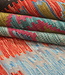 Leicht, langlebig und wendbar ist dieser Kelim nicht nur praktisch, sondern auch ein zeitloses Kunstwerk, das jeden Raum aufwertet. Jeder Teppich ist ein Unikat und zeigt die Geschicklichkeit und Liebe zum Detail des Handwerkers, was ihn zu einer perfekten Ergänzung sowohl für moderne als auch traditionelle Innenräume macht.