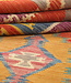 Die Kelims wurden mit natürlichen Farbstoffen wie Baumrinde, Früchten, Gemüse und anderen pflanzlichen Quellen gefärbt. Dies führt zu wunderschönen und harmonischen Farbkombinationen.