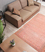 Dieser Teppich ist professionell gereinigt und restauriert, mit gleichmäßigen Vintage-Gebrauchsspuren und der Farbpalette ist Lachsfarbe.