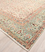 Dieser Teppich ist professionell gereinigt und restauriert, mit gleichmäßigen Vintage-Gebrauchsspuren und der Farbpalette ist Pistaziengrün und cremeweiß.