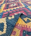 This elegant, colorful and unique hand woven Afghan kilim rug from Afghanistan is made out of Ghazny wool which is known as the best wool in this region.