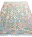 This elegant, colorful and unique hand woven Afghan kilim rug from Afghanistan is made out of Ghazny wool which is known as the best wool in this region.