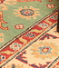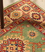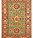 This hand-knotted Kazak rug is a beautiful example of Afghan craftsmanship. It is made in Afghanistan from 100% high-quality wool, making it soft, strong, and long-lasting.