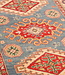This hand-knotted Kazak rug is a beautiful example of Afghan craftsmanship. It is made in Afghanistan from 100% high-quality wool, making it soft, strong, and long-lasting.