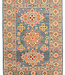 This hand-knotted Kazak rug is a beautiful example of Afghan craftsmanship. It is made in Afghanistan from 100% high-quality wool, making it soft, strong, and long-lasting.