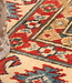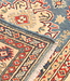This hand-knotted Kazak rug is a beautiful example of Afghan craftsmanship. It is made in Afghanistan from 100% high-quality wool, making it soft, strong, and long-lasting.