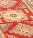 This hand-knotted Kazak rug is a beautiful example of Afghan craftsmanship. It is made in Afghanistan from 100% high-quality wool, making it soft, strong, and long-lasting.