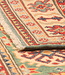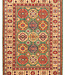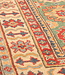 This hand-knotted Kazak rug is a beautiful example of Afghan craftsmanship. It is made in Afghanistan from 100% high-quality wool, making it soft, strong, and long-lasting.