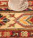 This hand-knotted Kazak rug is a beautiful example of Afghan craftsmanship. It is made in Afghanistan from 100% high-quality wool, making it soft, strong, and long-lasting.