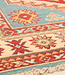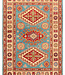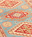 This hand-knotted Kazak rug is a beautiful example of Afghan craftsmanship. It is made in Afghanistan from 100% high-quality wool, making it soft, strong, and long-lasting.