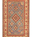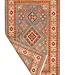 This hand-knotted Kazak rug is a beautiful example of Afghan craftsmanship. It is made in Afghanistan from 100% high-quality wool, making it soft, strong, and long-lasting.