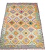 Beautiful hand-woven traditional kilim carpet from Afghanistan, beautiful soft colours, certainly not a 'hard' fabric like most kilims!, but timeless and suitable for all types of interior styles due to the colours