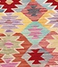 Beautiful hand-woven traditional kilim carpet from Afghanistan, beautiful soft colours, certainly not a 'hard' fabric like most kilims!, but timeless and suitable for all types of interior styles due to the colours