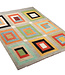 Beautiful hand-woven ,modern kilim carpet from Afghanistan, beautiful soft colours, certainly not a 'hard' fabric like most kilims!, but timeless and suitable for all types of interior styles due to the colours