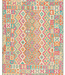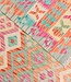 This elegant, colorful and unique handwoven Afghan kilim rug from Afghanistan is made out of Ghazni wool, which is known as the best wool in this region.