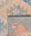 Beautiful hand-woven traditional kilim carpet from Afghanistan, beautiful soft colours, certainly not a 'hard' fabric like most kilims!, but timeless and suitable for all types of interior styles due to the colours