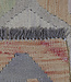 Beautiful hand-woven traditional kilim carpet from Afghanistan, beautiful soft colours, certainly not a 'hard' fabric like most kilims!, but timeless and suitable for all types of interior styles due to the colours