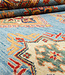 Kazak Rugs are known for their artistic geometric designs and our rugs were hand-knotted by Afghanis, using rug-making techniques and designs handed to them by their forebears. The most common designs include medallions, animals, and flowers. The main colors of the rug are blue and red but, sometimes, other hues include gold, yellow, beige, and green. They are created using high-quality 100% handspun wool and the colors used were derived from natural dyes. The rugs are washed in a special way which gives them a glossy sheen. These one-of-a-kind resilient rugs give off a luxurious vibe as well as an Oriental feel to a room.