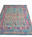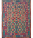 This elegant, colorful and unique handwoven Afghan kilim rug from Afghanistan is made out of Ghazni wool, which is known as the best wool in this region.