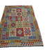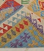 This elegant, colorful and unique handwoven Afghan kilim rug from Afghanistan is made out of Ghazni wool, which is known as the best wool in this region.