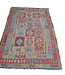 This elegant, colorful and unique handwoven Afghan kilim rug from Afghanistan is made out of Ghazni wool, which is known as the best wool in this region.