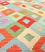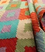 This elegant, colorful and unique handwoven Afghan kilim rug from Afghanistan is made out of Ghazni wool, which is known as the best wool in this region.