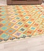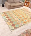 This elegant, colorful and unique handwoven Afghan kilim rug from Afghanistan is made out of Ghazni wool, which is known as the best wool in this region.