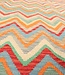 This elegant, colorful and unique handwoven Afghan kilim rug from Afghanistan is made out of Ghazni wool, which is known as the best wool in this region.