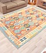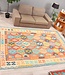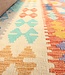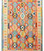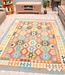 This elegant, colorful and unique handwoven Afghan kilim rug from Afghanistan is made out of Ghazni wool, which is known as the best wool in this region.