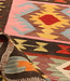 Beautiful hand-woven traditional kilim carpet from Afghanistan, beautiful soft colours, certainly not a 'hard' fabric like most kilims!, but timeless and suitable for all types of interior styles due to the colours