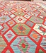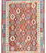 This elegant, colorful and unique handwoven Afghan kilim rug from Afghanistan is made out of Ghazni wool, which is known as the best wool in this region.