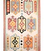 Beautiful hand-woven traditional kilim carpet from Afghanistan, beautiful soft colours, certainly not a 'hard' fabric like most kilims!, but timeless and suitable for all types of interior styles due to the colours