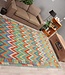 This elegant, colorful and unique handwoven Afghan kilim rug from Afghanistan is made out of Ghazni wool, which is known as the best wool in this region.