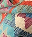 This elegant, colorful and unique handwoven Afghan kilim rug from Afghanistan is made out of Ghazni wool, which is known as the best wool in this region.