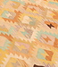 Beautiful hand-woven traditional kilim carpet from Afghanistan, beautiful soft colours, certainly not a 'hard' fabric like most kilims!, but timeless and suitable for all types of interior styles due to the colours
