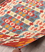 This elegant, colorful and unique handwoven Afghan kilim rug from Afghanistan is made out of Ghazni wool, which is known as the best wool in this region.