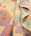 This elegant, colorful and unique handwoven Afghan kilim rug from Afghanistan is made out of Ghazni wool, which is known as the best wool in this region.