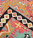 This elegant, colorful and unique handwoven Afghan kilim rug from Afghanistan is made out of Ghazni wool, which is known as the best wool in this region.
