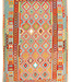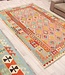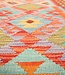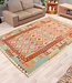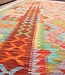 This elegant, colorful and unique handwoven Afghan kilim rug from Afghanistan is made out of Ghazni wool, which is known as the best wool in this region.